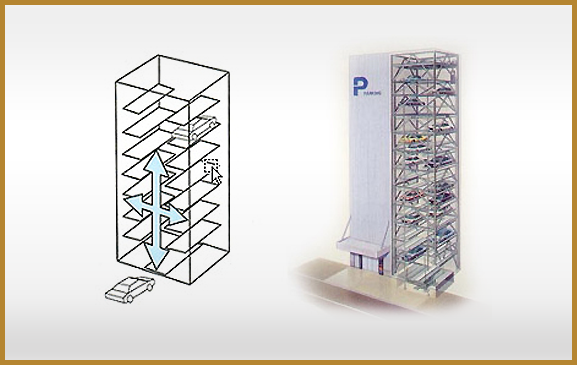 - 엘리베이터처럼 차량을 위아래로 이동시키며 주차